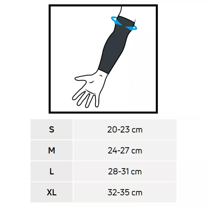 Um die richtige Größe zu wählen, messen Sie den Umfang Ihres Arms auf Höhe des Bizeps. Die in unserer Online-Apotheke erhältlichen Größen sind in S (20 - 23 cm), M (24 - 27 cm), L (28 - 31 cm) und XL (32 - 35 cm) unterteilt. Wählen Sie diejenige, die eine eng anliegende Passform garantiert, ohne den Arm übermäßig zu komprimieren.
