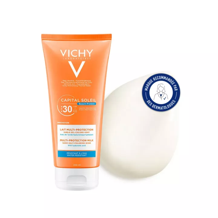Vichy Capital Soleil Lait Protecteur Onctueux SPF30 200 ml associe un système de filtres à spectre large UVA-UVB (spf 30) à une formule multi-résistante.