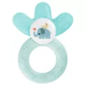 Questo anello per la dentizione è stato appositamente progettato per offrire al bambino il massimo comfort durante la dentizione. La sua forma curva lo rende facile da tenere, afferrare e utilizzare in modo indipendente. Inoltre, i rami dell'anello sono riempiti di acqua purificata e possono essere refrigerati, garantendo un effetto rinfrescante e lenitivo per le gengive del bambino.