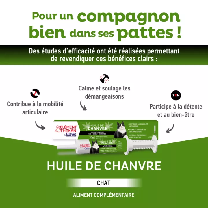 Favorisce il rilassamento: Lo stress e l'ansia possono avere un impatto significativo sul benessere del gatto. Favorendo il rilassamento, l'olio di canapa Clement Thekan aiuta il gatto a mantenere la calma e l'equilibrio in situazioni di stress.