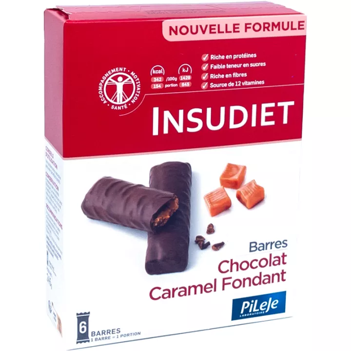Caixa de 6 barras de 45 g ao melhor preço online. As barras Insudiet cabem facilmente na sua mala para as levar consigo para onde quer que vá. Quer esteja no escritório, no ginásio ou mesmo em movimento, são a solução perfeita para um lanche rápido, satisfatório e sem culpa. A sua textura que se derrete na boca e o requintado sabor a caramelo coberto de chocolate garantem um momento delicioso em cada dentada.