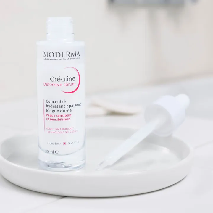 Créaline Défensive Sérum é um tratamento específico concentrado, hidratante e calmante , concebido para retardar o envelhecimento prematuro das peles sensíveis, sensibilizadas pelas agressões quotidianas. Este sérum contémácido hialurónico para dar volume à pele e um complexo antioxidante à base de carnosina e vitamina E.