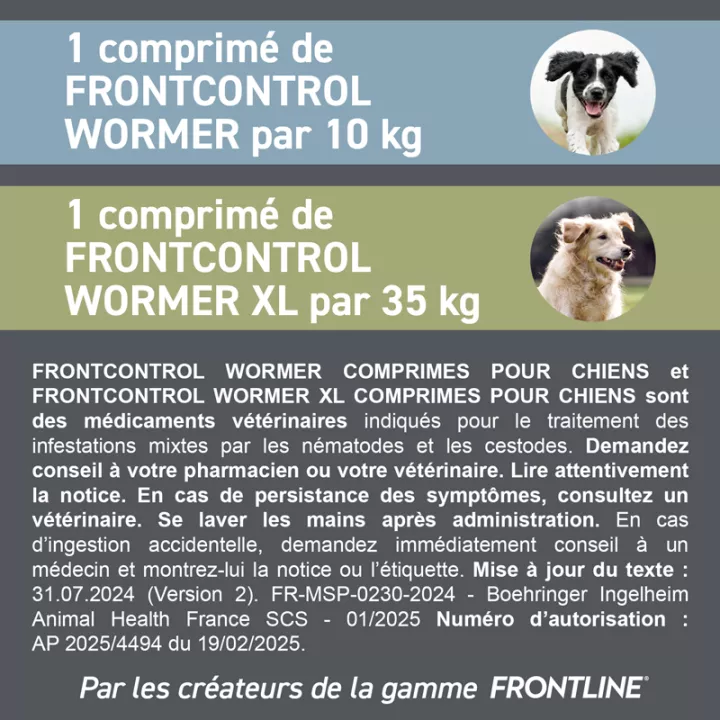 Оставьте свое мнение о рекомендациях по применению и дозировке Frontcontrol-Wormer Vermifuge Dog 2 таблетки у нашего партнера Avis Vérifiés после покупки.
